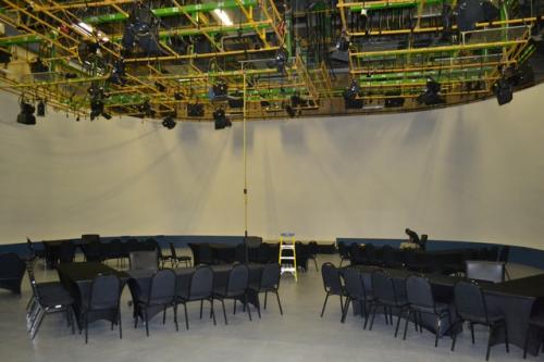 После этого мы поехали на тв-канал, который спонсирует федеральный бюджет, где должны были собраться местные журналисты. В студии этого же телеканала пройдут через неделю и сами дебаты кандидатов.
