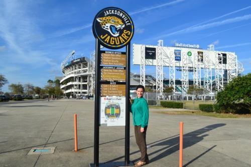 Фото на память возле стадиона, лого местной команды "Ягуары"