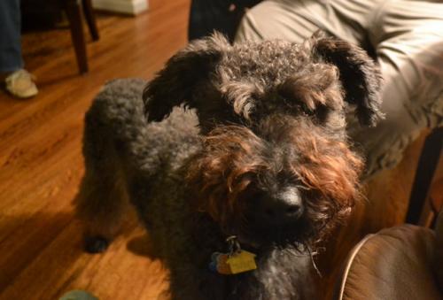 П.С. Мы увидели Фитси – но так как батарея уже села, то получился лишь один более-менее удачный кадр ее мордашки. Забыла породу собачки, это что-то похожее с ризеншнауцером, но меньше размеров, кучерявая, цвет серый, ей 1.5 года, я такой в Чернигове не видела.