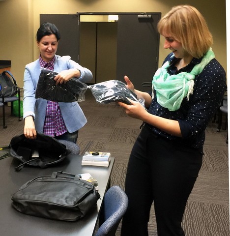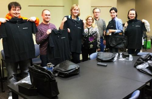 Потом нас Джули позвала в аудиторию, где нам вручили еще подарки. Это были чудесные открытки с видами Джексонвиля от милашки Стива, тоже я так понимаю его производства, фирменные сумки с лого ФТЮ, где внутри лежали термос, ручки и футболки. Было очень-очень приятно!
