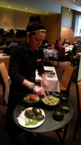 Затем мы поехали в молл-ареа, так называется место, где размещены целые улицы с магазинами. Посовещавшись с местными и между собой мы решили, что это где-то 10 стадионов по территории. Перед этим нас повели в престижный ресторан мексиканской кухни Cantino Laredo. Здесь вход был по предварительной резервации. Здесь была возможность выбрать не убийственные для фигуры блюда и я первый раз попробовала мексиканскую пасту из авокадо – гуакамоле. Честно говоря, до этого даже не слышала о таком названии. Делают ее прямо при тебе официантка – это фишка заведения. Также взяла на пробу калифорнийское вино Kenwood Cabernet Sovinion. Это можно сказать типичное вино, в магазине стоит около 10 у.е., но в ресторане с трехкратной наценкой. Я фанат сухих красных вин, и это мне очень понравилось.