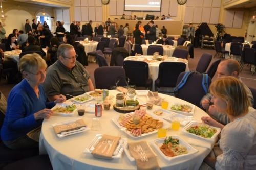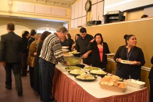 Там было много людей, что понимали русский и у них был какой-то праздник. Все пришли в черных костюмах и платьях, а мы чуть ли не единственные совсем не по дресс-коду. Но я, когда ехала туда, думала, это будет мероприятие на 20 человек в обычном чьем-то доме. Вместо этого огромный концертный зал, накрытые празднично столы и все такое. За столом мы были с пожилой парой, которая курирует вопросы помощи украинским эмигрантам в Америке, плюс ходят в эту церковь. Подробнее узнаю об их деятельности завтра (мы приглашены к ним на обед), так как мы пробыли там всего часик и нас забрал друг нашей переводчицы Елены Луис в отель.