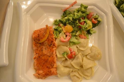 Не смотрите на то, что пельмешки соседствуют с рыбой и салатом, взяла их на пробу и могу сказать, что эта община готовит их ничуть не хуже, чем наши хозяйки