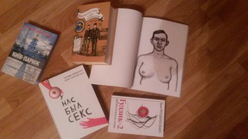 Тема Майдана отразилась и на писателях. Сразу три из них презентовали свои книги, где в заголовке значится Майдан. Это Антон Мухарский, Соня Кошкина и Андрей Курков. И да-да, вы не ослышались гламурный Мухарский, оказывается, пишет книги, да еще про Майдан. Причем ассортимент его прозы достаточно разнообразный, это и детская книга «Легенда про Квітозавра» и роман «Розрив» в соавторстве и "Майдан. Революція Духу". Цены на его книги достаточно умеренные.