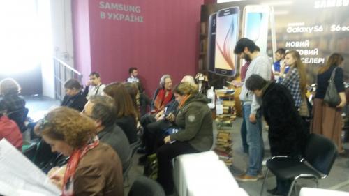 В 17.00 должна была быть публичная дискуссия при участии Леся Подервянского (его сложная фамилия была написана с ошибкой в программке и на стенде, я тоже ее сперва продублировала в фб, сори) и Ирены Карпы «Українська культура без цензури», но Лесь не пришел(( Его заменял другой писатель, фамилию не расслышала.