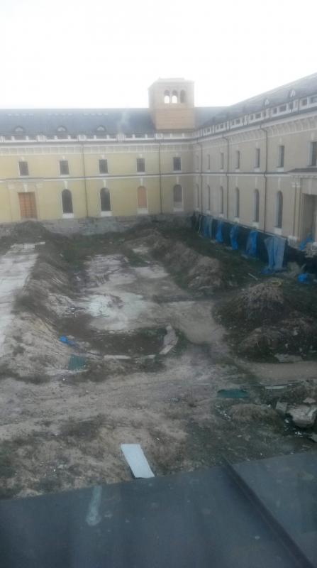 Вид из окна второго этажа. Возле окна двое мужчин вели задушевную беседу о том, чтобы было в образовании и культуре, если бы в стране появилось 50 ярких персонажей, типа дали бы толчек и все такое)) Суть и все нюансы передать сложно, ибо о высоком))