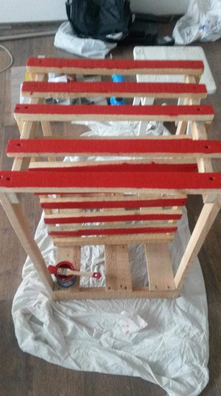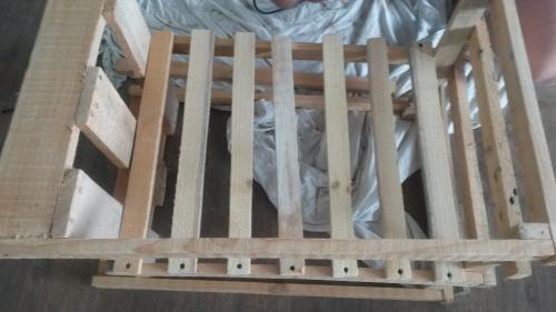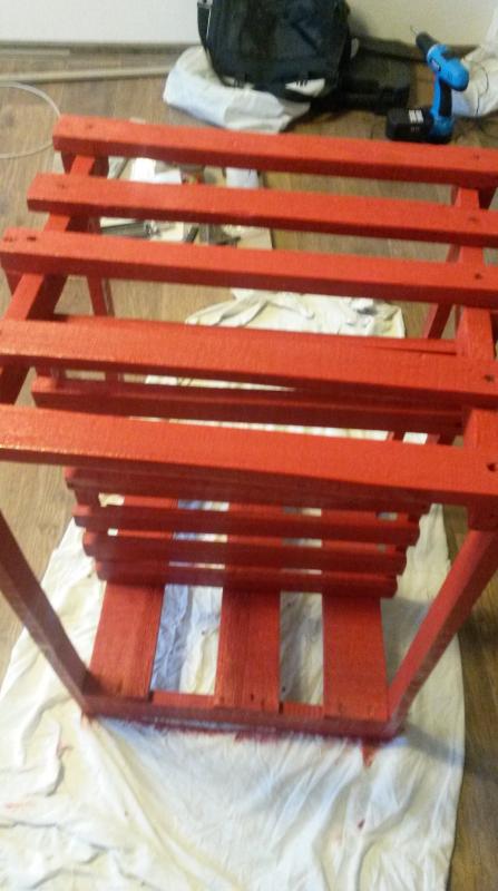 Почему-то зацепила идея мебели из поддонов. Вообще такая мебель делается из европоддонов, которые по качеству наши обычные превосходят. Но так как «модель» была пробная, чисто потренироваться, то слепила из того что было. В наличии был поддон из под крупной бытовой техники, что заказывали по почте. Сами доски плохого качества – сосна, но не такие аккуратные шалевки, как продают в магазинах, поэтому зашкуривать их было почти бесполезно, но я все равно прошлась 2-мя видами наждачной бумаги – крупной и нулевкой.