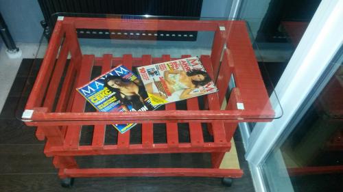Внутри стола – почти винтажные журналы MAXIM, то, что под руку попалось))