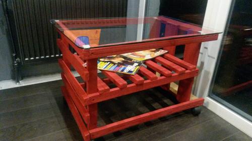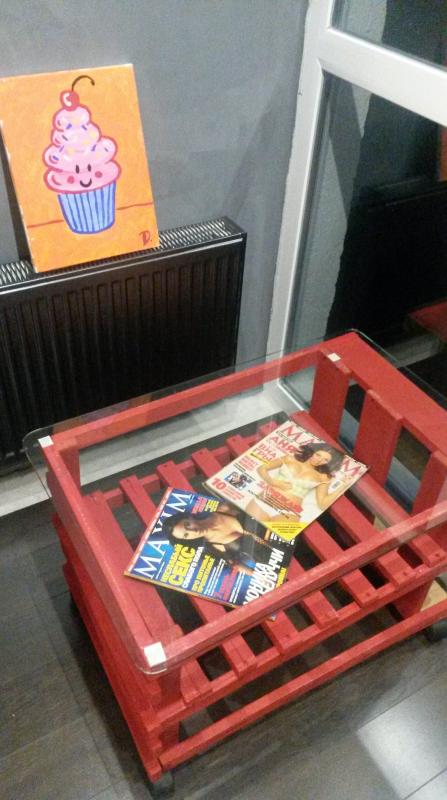 В общем, получилось, что получилось, не судите строго)) Еще он немного не докрашен)) Может кто-то возьмет на заметку, тем более столы такого размера по 800-1500 гривен, если со стеклом. Скорее всего, я его потом переделаю, используя нормальное дерево.