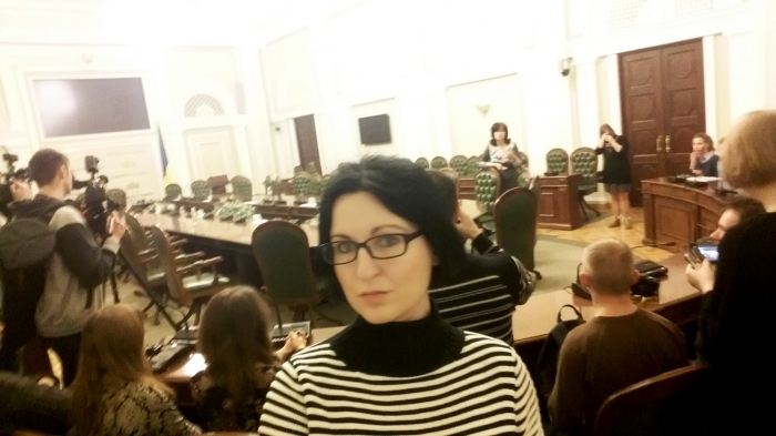После Крыжановского на вопросы журналистов отвечала Ирина Кармелюк, до этого имевшая 10-летний опыт работы в Укринформе. В принципе, такая себе простая приятная женщина. Объясняла как получить аккредитацию для работы журналиста в Верховной Раде.