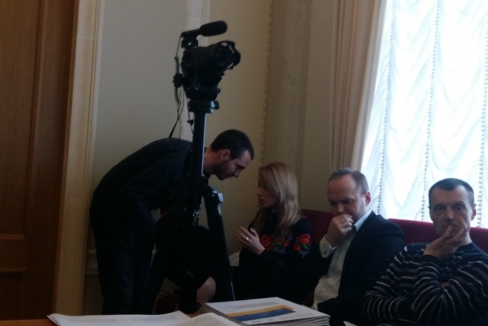 Здание внутри чем-то похоже на нашу миськраду, только более большое, кабинеты, залы оснащены подороже, как мебелью так и технически, ну а самое больше отличие, это, конечно, же количество телезвезд, а точнее депутатов на квадратный метр. Тут тебе и Пинзеник и Геращенко и Поярков и Лещенко, который мелькал в коридорах и кабинетах чаще всего в оба наши дня посещения ВР. Конечно, же нардепы от Черниговщины, которые затем должны были с нами пообщаться за круглым столом. Ясен перец куча журналистов. Отмечу, что, как мне показалось, самые красивые и гламурные журналистки у 112-го канала, который называют пророссийским, и который так любят смотреть украинские пенсионеры. Действительно, картинка там всегда яркая, динамичная, отличается от проукраинского ТВ и больше напоминает ОРТ. Их микрофон появился первым (на них частенько ссылаются серьезные ресурсы, как на первоисточник) и на заседании комкоррупции. Так поняла, что работают – на износ:-)