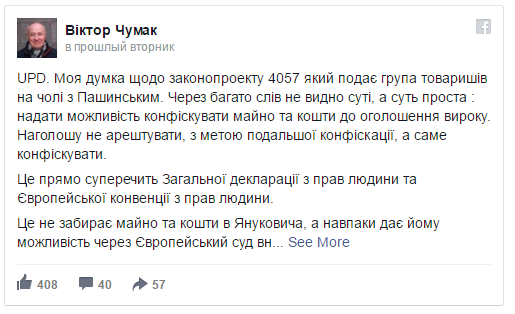 БПП, к примеру, считает этот законопроект неудачным и таковым, что нарушает права человека, публикую краткое и удачное разъяснения Виктор Чумака по этому поводу.