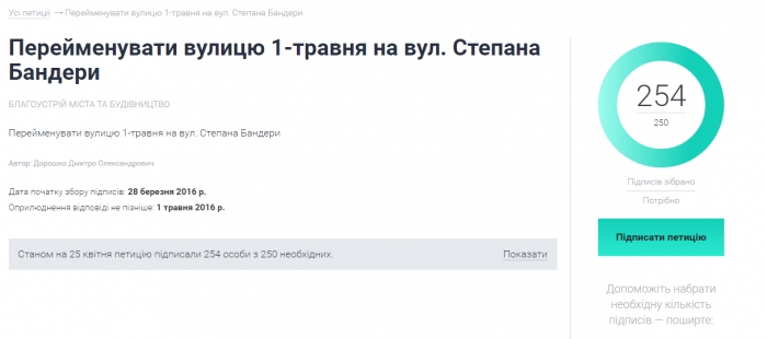 Электронные петиции или чем насолил Бандера жителям улицы 1 Мая