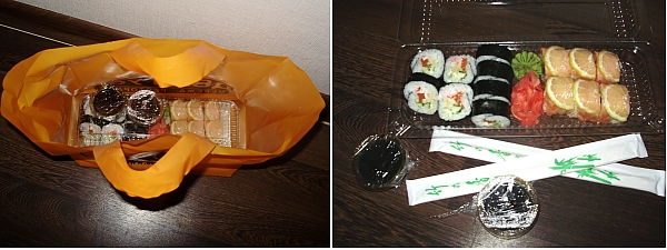 А буквально два дня назад суши-наборчики (не те, что для приготовления, а уже готовые роллы) появились в нашем Седаме – так теперь и вообще каждый раз когда идешь за покупками можно купить. Конечно, на вкус они не совсем такие, как если вам привозят только что приготовленные, из под руки повара – но тоже весьма съедобны.