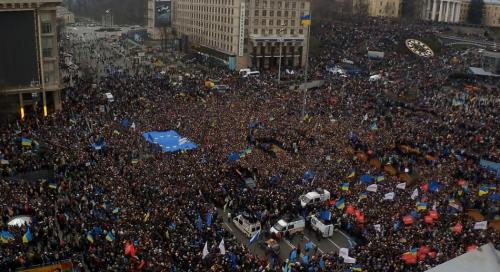 Я выбрал саму-самую эмоционально цепляющую фотографию и с самым похожим масштабом на предыдущую. Согласно оценок укр СМИ , на этой фотографии должно быть 700-1000 тыс.человек, т.е. более чем в два раза больше , чем на прыдыдущей.