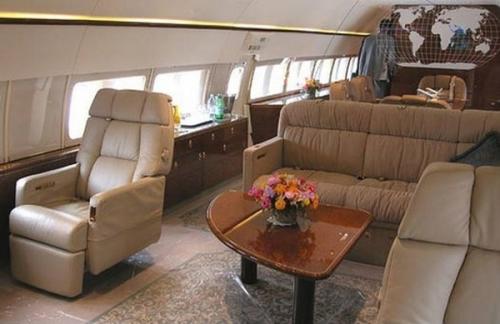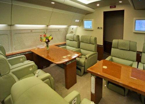 В салоне все устроено по высшему разряду, сразу видно — старались для президента. На борту есть рабочий кабинет, зал заседаний, кухня, отсеки для сопровождающих лиц, багажа и зона отдыха, где президент может вздремнуть.