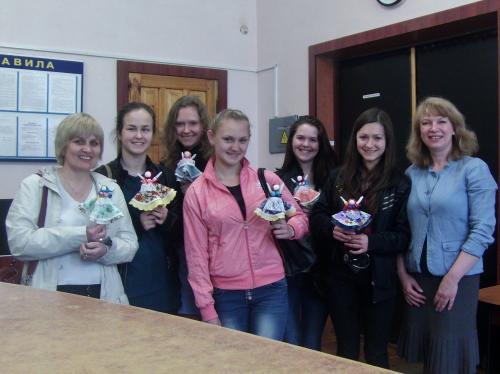 Очікував школярів також і приємний сюрприз. У бібліотеці стало доброю традицією проводити майстер-класи - ділитися секретами творчості. Цього разу усім, хто бажав, пропонувалося спробувати власноруч створити ляльку-мотанку. З радістю погодилися не тільки дівчата, а й хлопці. Результатами дружної роботи стали ляльки «Благодать» - прадавній сакральний оберіг з побажаннями ніколи не сумувати і не опускати руки.