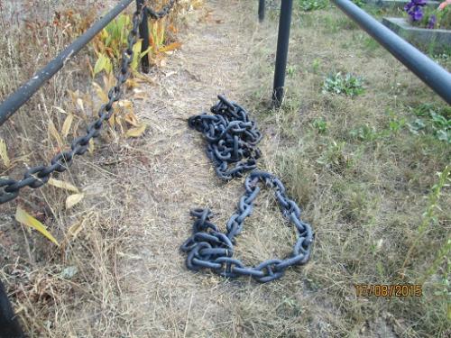 Вот срезанные цепи на соседней могиле, которые ворье не успело стащить...