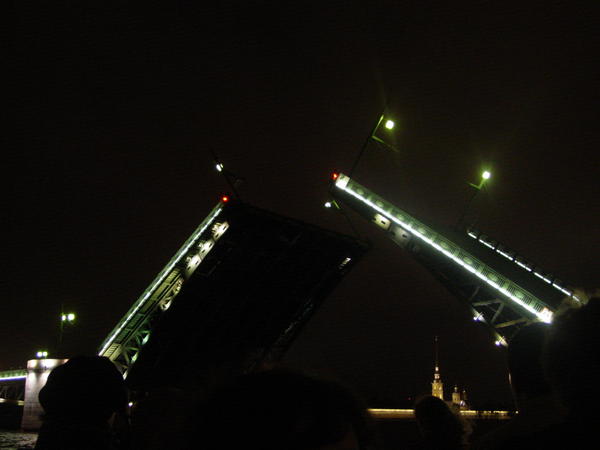 А под одним из этих разводных мостов в Питере в ночь на 24 мая я предложил любимой девушке стать моей женой... До того мы были знакомы около 6 месяцев :)