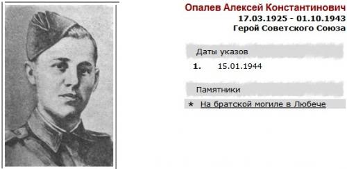 Уже дома, занырнув в интернет-архивы, с удивлением выявил сразу две ошибки местных хранителей памяти: в фамилии героя и дате смерти. Алексей Опалев, проведя на фронте всего три месяца, положил свою жизнь на алтарь Великой Победы даже не в девятнадцать, а всего в восемнадцать лет.