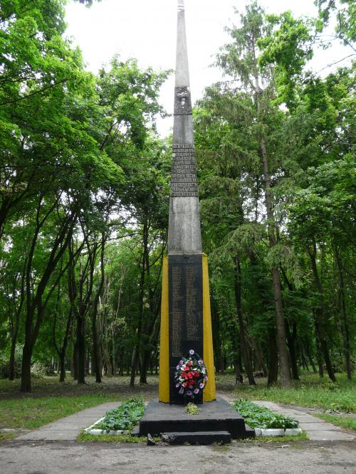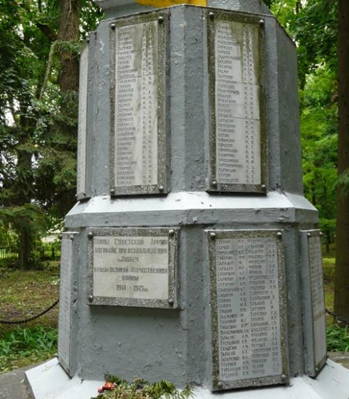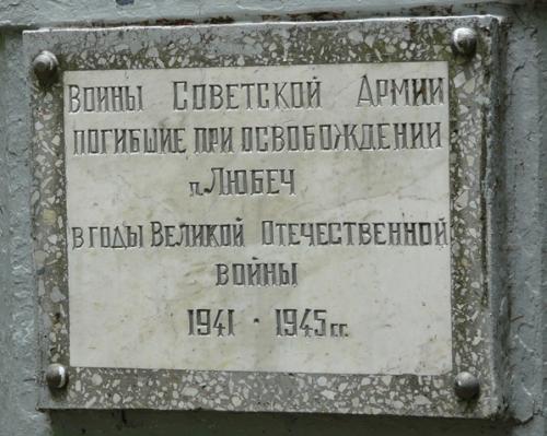На центральной паркой аллее установлен бетонный обелиск (в 1968 году) на котором высечены слова: «Вічна пам'ять односельчанам, загиблим в роки Великої вітчизняної війни» и имена жителей Любеча, не вернувшихся с фронта. Вот это правильно. Терпеть ненавижу безымянных памятников. И ныне живущие обязаны свято чтить память своих земляков, отдавших свою жизнь ради их жизни.