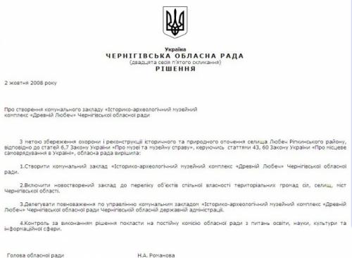 «збереження охорони і реконструкції історичного оточення селища Любеч», как постановлено Решением Черниговского областного совета. А то на полезные вещи средств почему-то вечно не хватает.