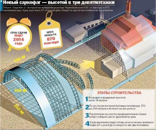 Фото: «Укрытие» №1 сооружено в неимоверно тяжелых условиях за 7 месяцев, сооружение «Укрытия» №2 («Арки») неспешно продолжается 11 лет
