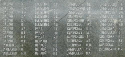 На 103 имени всего 7 фамилий: 47 представителей рода Гутник, 25 – рода Сибирских, 10 – рода Забіян, 9 – рода Ілюшенко, 5 – рода Дєдок, 4 – рода Неплюй, 3 – рода Рудий.