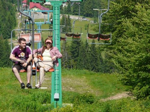 Окрестности Пилипца богаты на разные развлечения и, в частности, мы не отказали себе в удовольствии подняться на кресельном подъемнике на гору Гымба, чтобы полюбоваться на живописную панораму. Цена вопроса – 30 гривен.