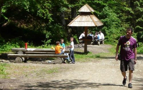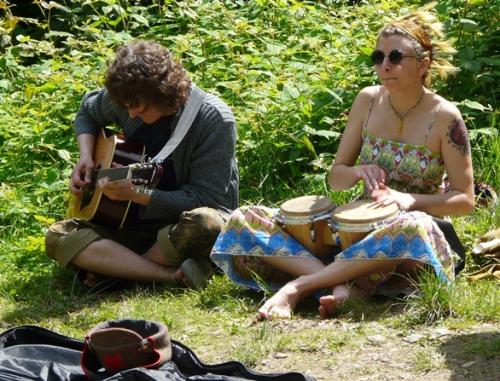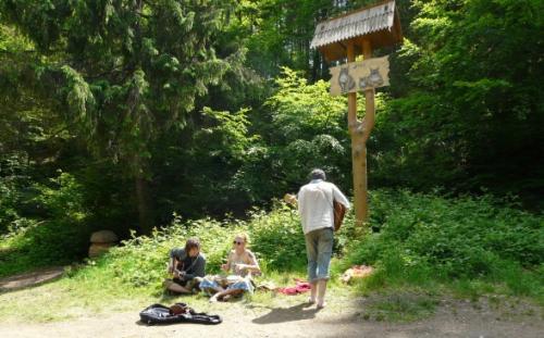 К водопаду Шепот мы добрались только в начале второго. Уплатив входную ренту, если не ошибаюсь, в три гривны, мы стали любоваться горными ручьями и слушать от Василия очередных историй. И в подтверждение его слов о том, что окрестности Шипота (местные любят именно так произносить название водопада) стали излюбленным местом неформальной молодежи, а на Ивана Купала здесь творится Садом и Гоморра – мы тут же встретили «детей цветов», музицирующих в свое удовольствие и с целью получения посильной материальной помощи от проходящих туристов.
