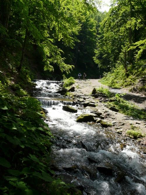 В прошлом году, в отчете об отдыхе в Севастополе, я жалел о том, что на северной стороне не нашел пункта проката велосипедов, чтобы попутешествовать по окрестностям. А вот в Закарпатье с прокатом горных велосипедов как раз все в порядке. И по берегам ручьев вовсю гасали велобайкеры…