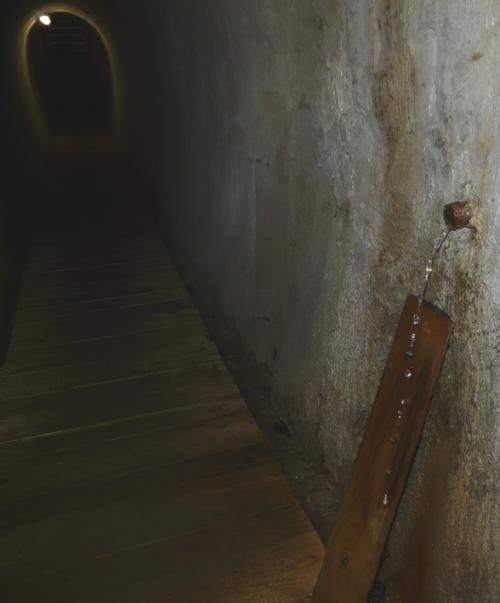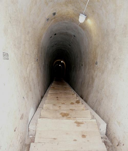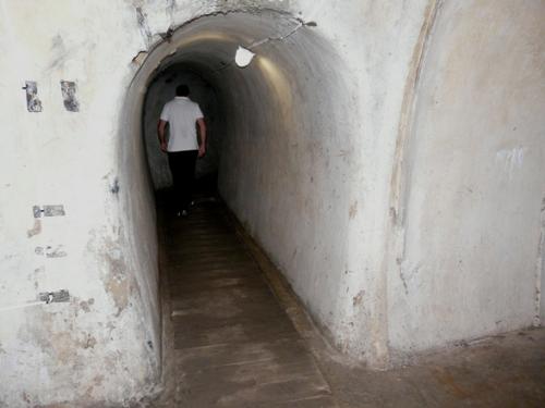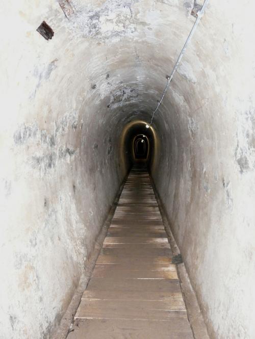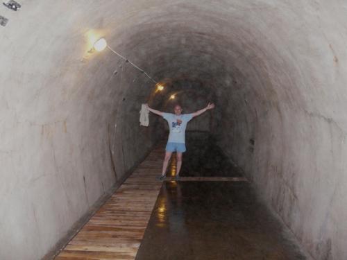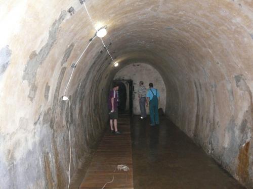 За вход в бункер с нас взяли по пять гривен. Протяженность галерей, по которым мы путешествовали в подземелье – метров пятьсот, хотя общая протяженность ходов значительно больше. Но мы ходили там, куда уже провели освещение и поменяли деревянный настил над дренажным каналом. Галереи разной ширины и протяженности, есть спуски и выходы, которые когда вели на поверхность к дзотам.