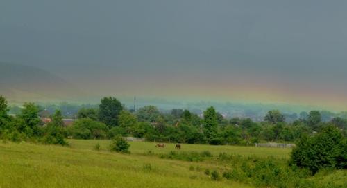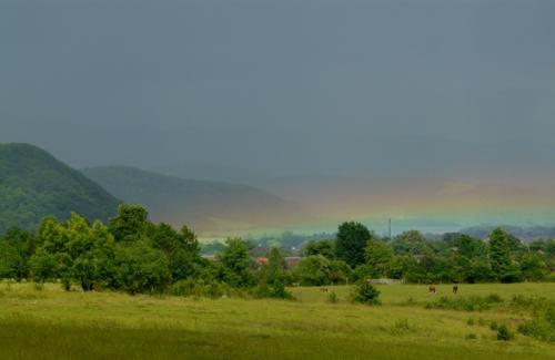 Тут дождь прекратился, из туч выглянуло солнышко и в долине между горами мы увидели купол радуги. Волшебное зрелище, которое не купишь ни за какие деньги. И которое не часто встречается даже на Закарпатье…
