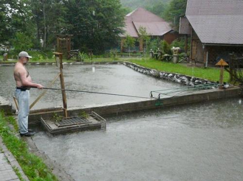 Вообще-то форель клевала так, как будто её не кормили с прошлого года. Лично я ловил её «в проводку», чтобы было видно, как она хищно заглатывает наживку. Хм, в следующий раз нужно будет попробовать махать насадкой над водой – уверен, что этот способ ловли будет еще прикольней. Кстати, на одном из снимков видны специальные штанги, на которых прикреплены фонари. Ночью их надвигают над бассейнами, а форель, выпрыгивая из воды, кормится мошкой, слетающейся на свет…