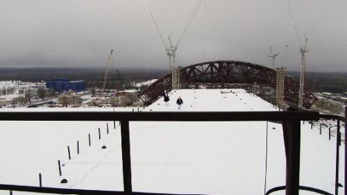 1) На крыше деаэраторной этажерки. Левее – крыша машзала. На заднем плане – сооружаемая «Арка»