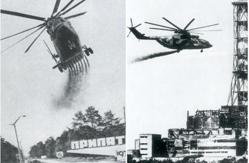 В частности, ту же загрузку активной зоны реактора поглощающими материалами с помощью вертолетов, вполне уместно сравнить с бомбометанием. То бишь, далеко не самым рациональным способом доставки песка и свинца. Кстати, крыша машинного зала 4-го блока пострадала не столько из-за взрыва реактора, сколько именно от этих «бомбометаний». А в итоге «спалили» лучших асов Союза.