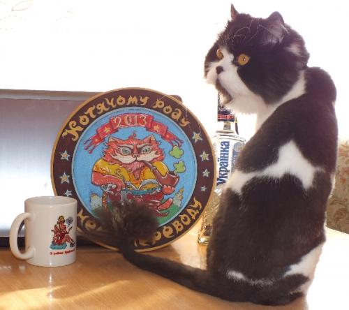 Несмотря на то, что сия сакральная процедура проводились без лишней помпы и масс-медийной огласки (на фига нам истерики патриотов о вывозе культурного наследия?!), от желающих полюбоваться на козацкого Котэ не было отбоя. Даже ушедший в глубокое подполье Bigdog, несмотря на свое индифферентное отношение к котячому роду, вырвал минутку, чтобы встретиться со старыми знакомыми и пожать руку Гуру за создание очередного шедевра…