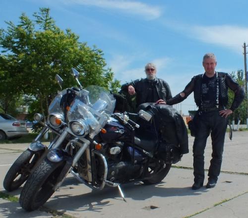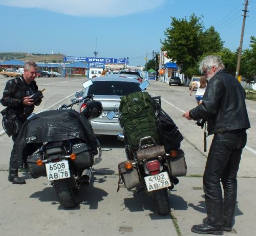 Нельзя было не обратить внимания на двух матерых мужиков с байками. Байкеры оказались питерцами (и это видно по номерам!), объехавшими Крым и держащими путь в Сочи. Некислый маршрут даже для путешествия в автомобиле. Настоящие бойцы!