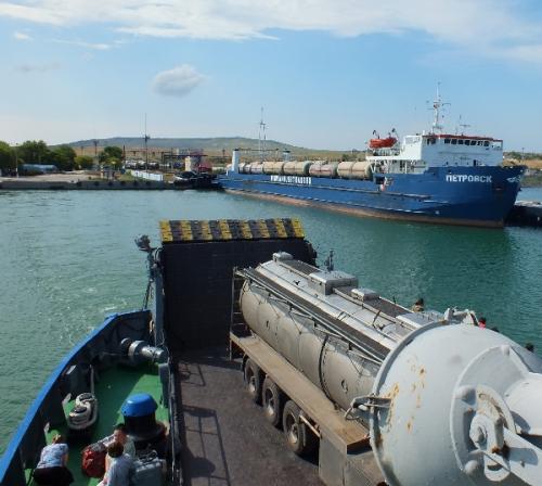 До 1990 года данным маршрутом переправляли даже пассажирские поезда, но ныне гражданам доступен только пассажиро-автомобильный паром. Хотя железнодорожный паром таки действует – вот он на снимке с цистернами со сжиженным газом…