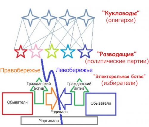 Внутри каждой из четырех групп есть собственные характерные сегменты, но вдаваться в эти детали не буду, дабы не перегружать текст. Короче задачей политиков является «окучить ботву» и принести голос избирателя в «общую кассу», которая находится в руках хозяина.