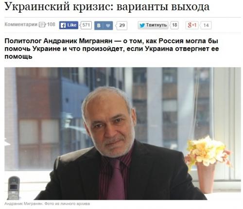 «…Могут ли эти три стороны — ЕС, Россия и США — согласовать общие позиции и навязать их нынешним киевским властям, объясняя им, что только в таком случае они получат деньги, только в таком случае можно гарантировать территориальную целостность, естественно, за исключением Крыма…»
