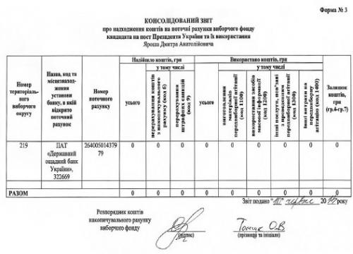 И всё-таки первое место симпатий избирателей досталось не ему, а Дмитрию Ярошу. Который хотя и занял на выборах всего 11 место с результатом в 0,70%, но зато на получение 127 818 голоса избирателей лидер «Правого сектора» не затратил ни копейки. О чем свидетельствуют официальные данные, зарегистрированные в ЦИК.