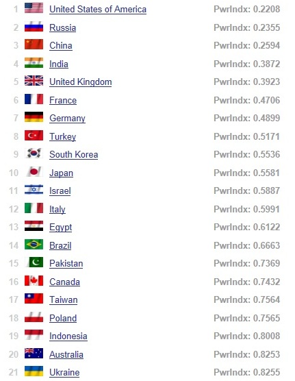 Схема реализации национальной военной доктрины строится исходя из военного потенциала противника и реальных возможностей самой Украины. В свежем рейтинге военного потенциала стран мира GlobalFirePower, при составлении которого учитываются 45 различных параметров военного потенциала стран, Россия занимает второе место, Украина – двадцать первое.