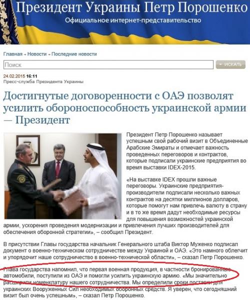 Дабы не цитировать вражеские голоса, ерничающие по поводу пусть хренового, но таки нашего Президента, просто дам ссылку на материал «Президент Украины приехал на IDEX-2015» из Газеты.Ру.