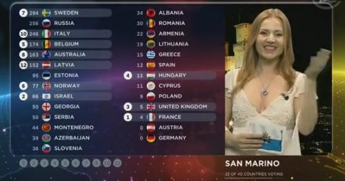 Жители крохотного Сан-Марино, в отличие, скажем от Франции и Германии, могут себе позволить удовольствие послать Рашу в жопу. И, так же как и Литва, не дали ей ни одного балла.