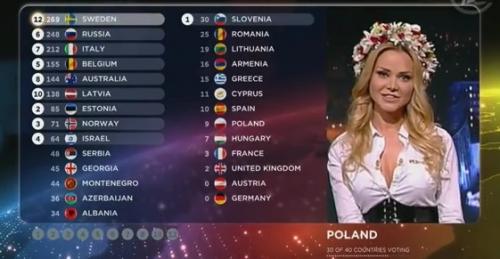 Для тех наивных граждан, которые свято верят в невозможность политического влияния на результаты голосования, напомню, что кроме голосов телезрителей в счет идут голоса национальных жюри. Жюри отбирает несколько лучших песен и выставляет им баллы, от 1 до 12. Затем баллы от телезрителей и жюри суммируются…