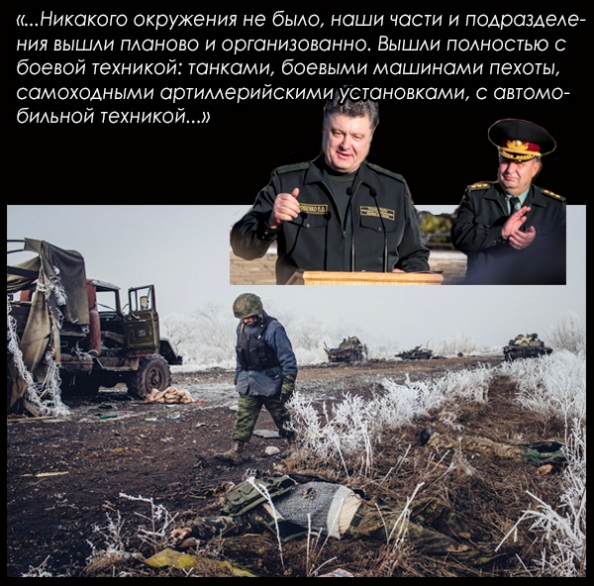 1. «Иловайский котел №2»: январское окружение группировки украинских войск под Дебальцево. Феерически «успешная» оборонительная операция, лишний раз подтвердившая профессиональную некомпетентность руководства ВСУ и политическую неадекватность Пана Говноокомандующего.