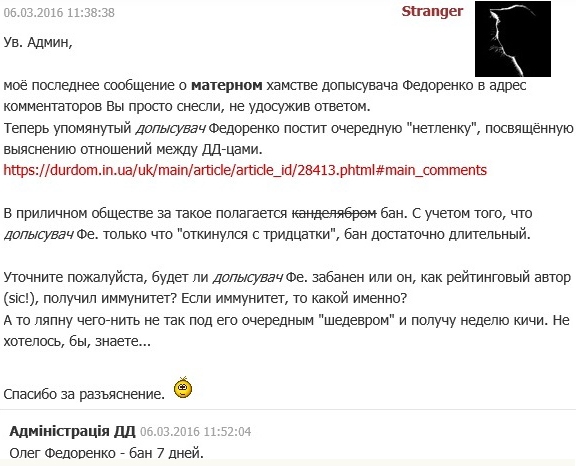 Сегодняшний рассказ об одном дне из жизни «припецков» на одном из украинских общественно-политических сайтов, на котором автора забанили по челобитной кляузе одного из «припецков»