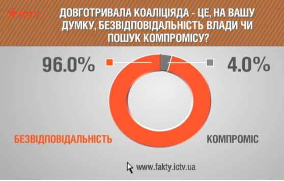 Весьма показательным были итоги вчерашнего голосования зрителей канала ICTV по вопросу: «Довготривала коаліціяда – це, на Вашу думку, безвідповідальність влади чи пошук компромісу?»: