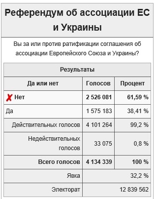Напомню результаты голландского референдума, состоявшегося 6 апреля: